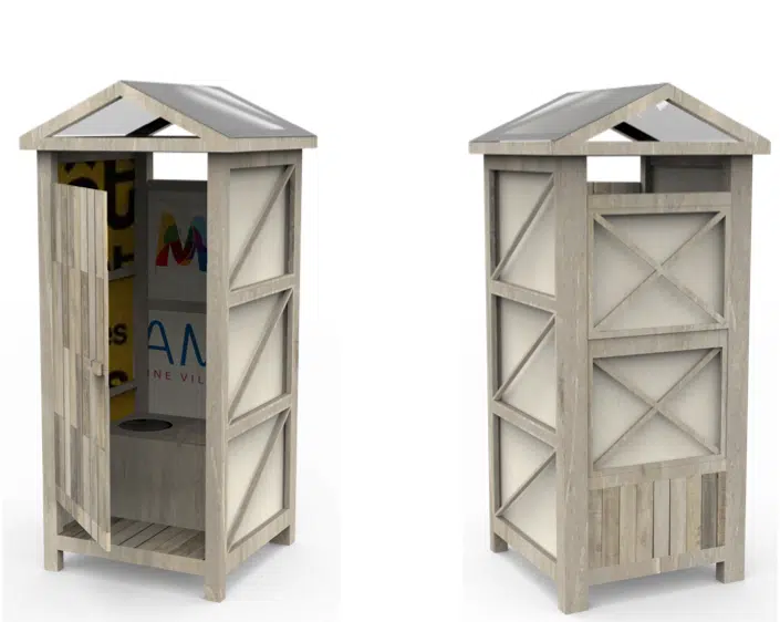 Dans un deuxième temps je me concentre sur la conception de toilettes sèches destinées aux manifestations temporaires dans l’espace public. Ce projet implique de nombreuses contraintes opérationnelles : le matériel doit être duplicable, léger et avec un montage simplifié car destiné à être manipulé par un personnel changeant. Simultanément il doit répondre à toutes les exigences de solidité d’un équipement de l’espace public soumis à usage intensif, et être rassurant pour un public non familiarisé avec ce type de toilettes.