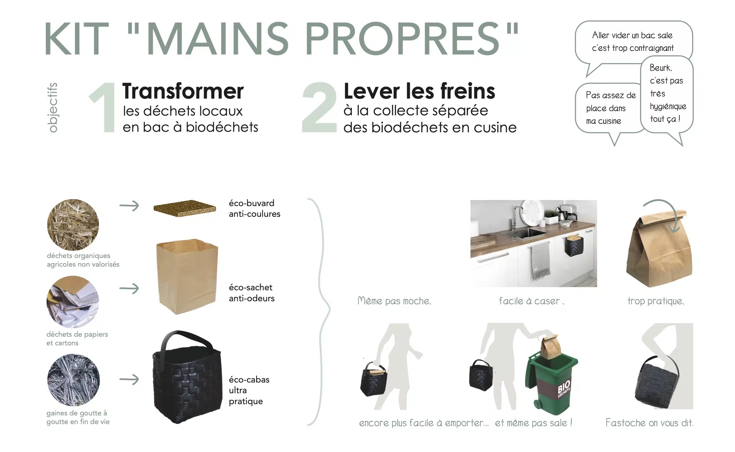 - Équiper une commune en mobilier urbain fabriqué localement à partir de déchets du territoire